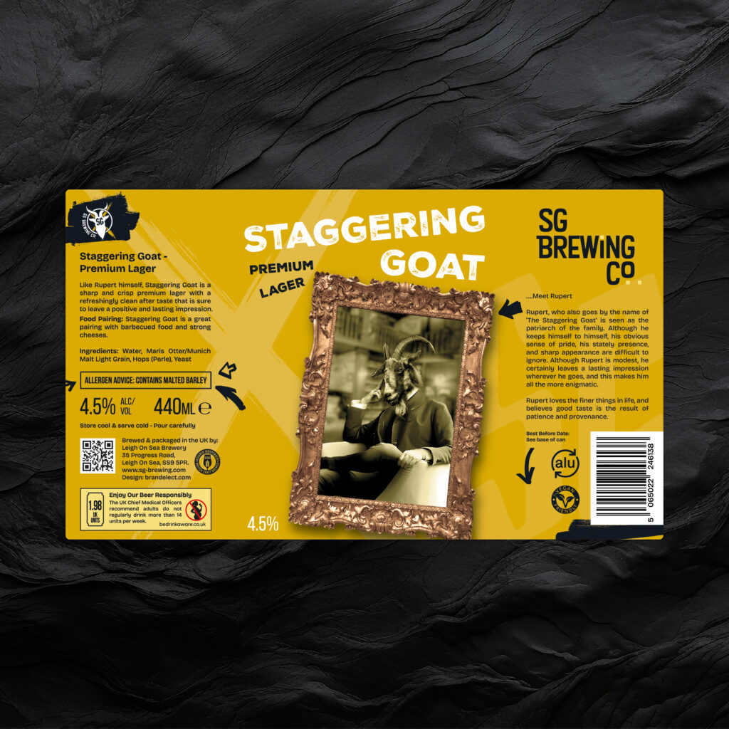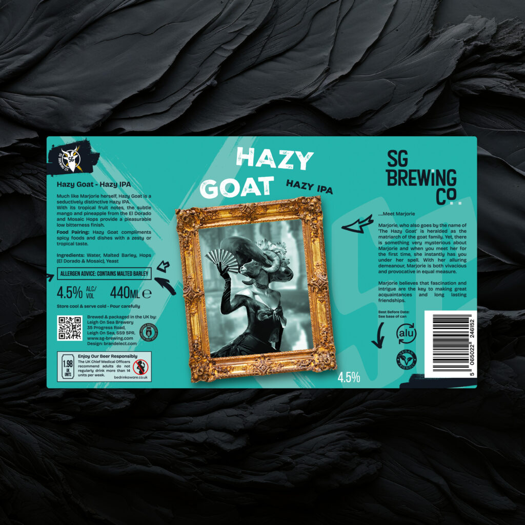 Initially I had intended this to be used as an asset in places like bottle caps or packaging but with the goat no longer having crosses for eyes something felt empty in the centre of this great logo then it struck me that my initial label designs had a black goat with the SG glowing out of it’s head!